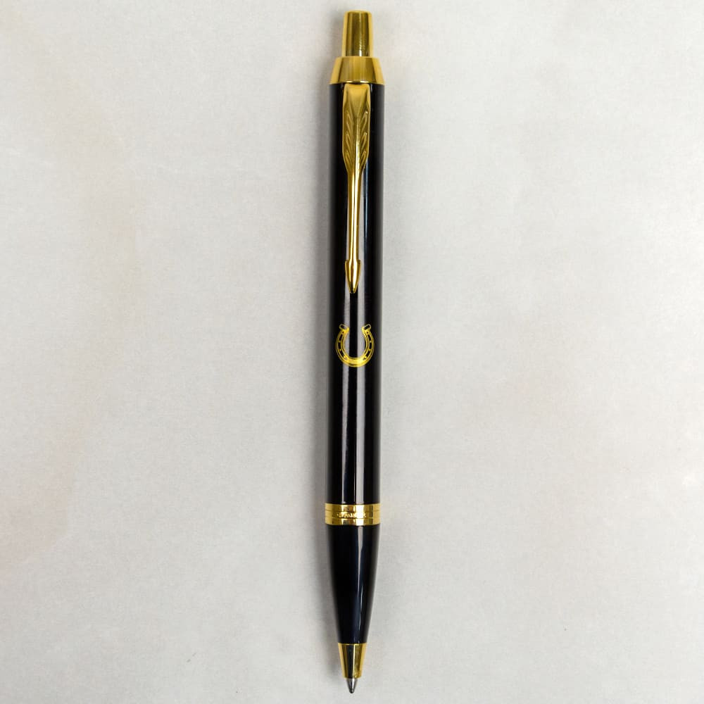 Parker IM DESIGN Black GT [Подкова на счастье] – эксклюзивная шариковая ручка с черным глянцевым лаком, позолотой и лазерной гравировкой. Дизайн гравировки с подковой - символом удачи - интересное праздничное предложение к 2026 году, который, согласно восточному календарю, пройдет под покровительством Лошади.