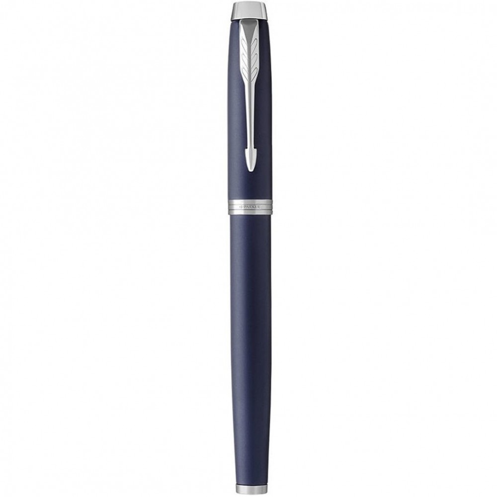 Матово-синяя роллерная ручка Parker IM Matte Blue CT RB 1931661 из основной линейки коллекции IM (Ай Эм). Идеальная производительность модели с латунным корпусом и колпачком с нанесением матового лака темно-синего благородного оттенка. Легендарный зажим в виде стрелы на съемном колпачке и фирменная гравировка Parker. Глянцевая зона захвата изготовлена из прочного черного пластика. Сдержанная серебристая отделка в виде хромирования на гладко отполированном металле.
