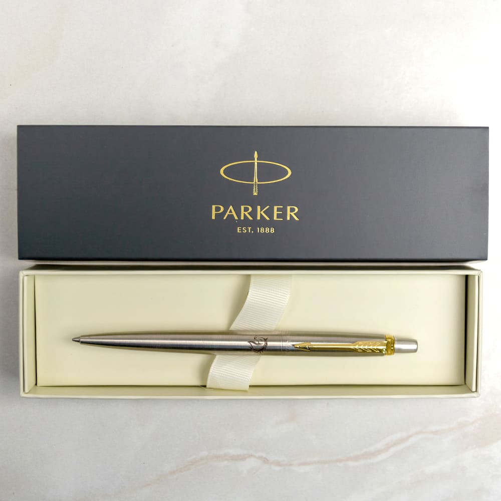 Parker JOTTER Stainless Steel GT BP + лазерная гравировка Трезубец золотой