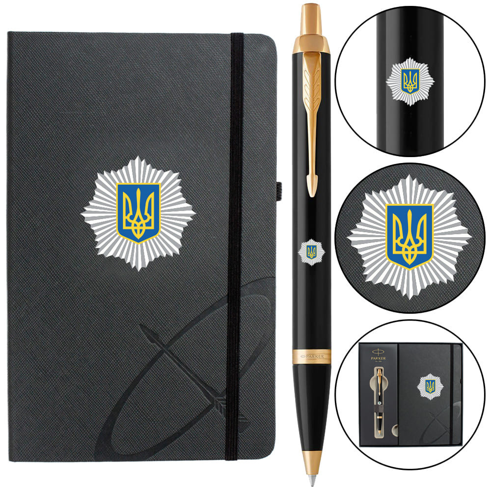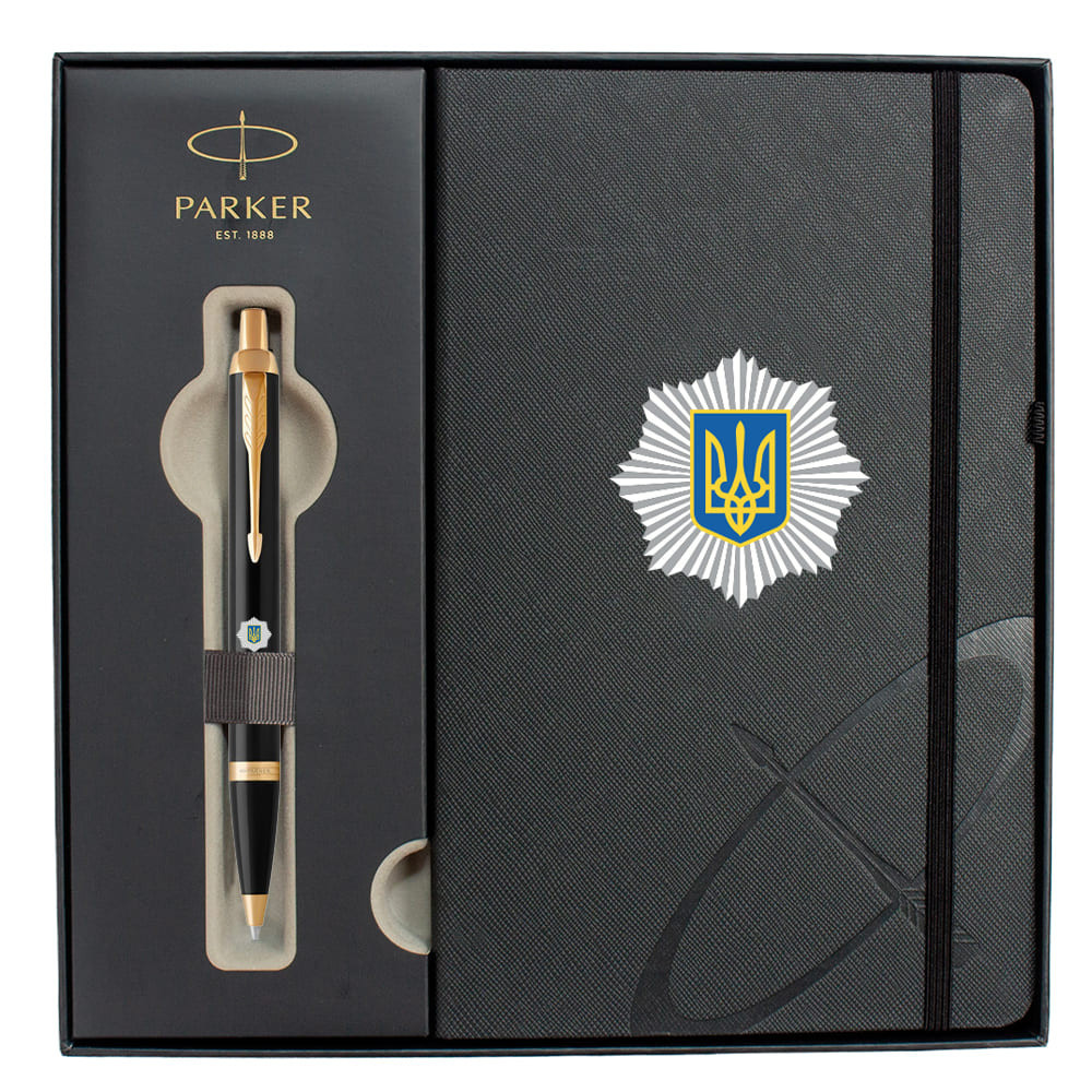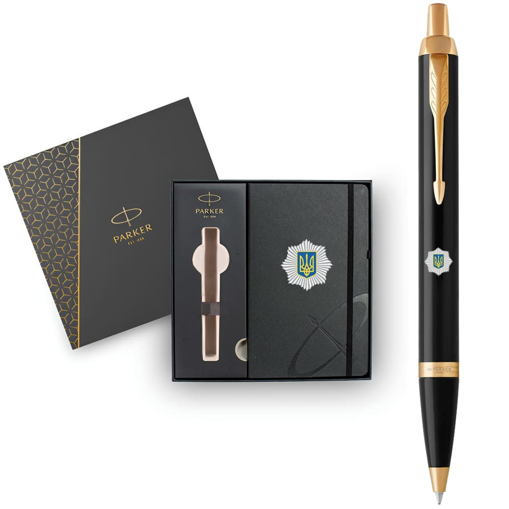 Эксклюзивный подарочный набор Parker: шариковая ручка IM SPECIAL Black GT и фирменный блокнот, украшенные печатью Эмблемы Министерства внутренних дел Украины. Специальное предложение для интересного подарка служащим МВД. Серия IM предлагает ручки с элегантным силуэтом и безупречным профессионализмом, дизайн и размер которых идеально подходит для мужчин и женщин. Ручка Parker IM – идеальное соотношение практичности и стиля.