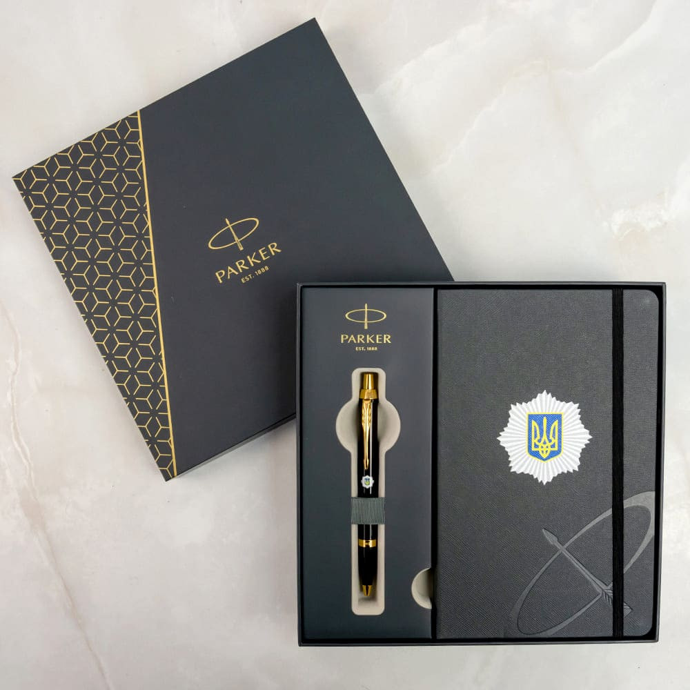Эксклюзивный набор: ручка шариковая IM UKRAINE Black GT BP с изображением Трезубец-ласточка + блокнот Parker + подарочная упаковка GIFT24 (Франция) Гарантия: 2 года
