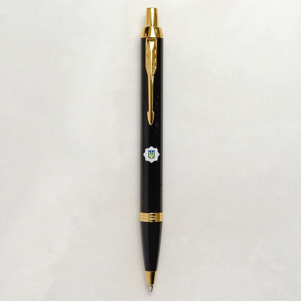 Ручка шариковая Parker IM Black GT BP + лазерная гравировка Эмблема ГСЧС Украины