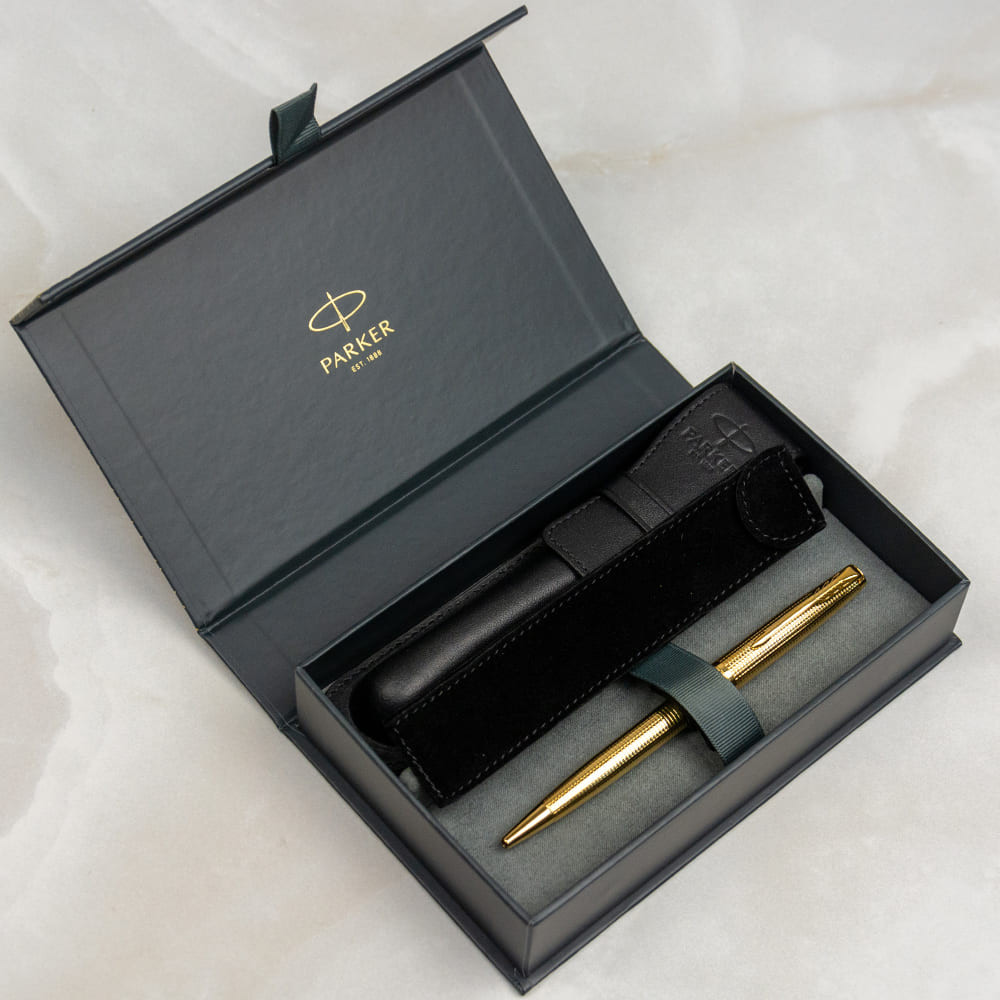 Набор: Ручка шариковая Parker SONNET SE Cisele Gold GT BP + бархатный чехол + кожаный чехол + подарочная коробка GIFT24 Гарантия: 2 года