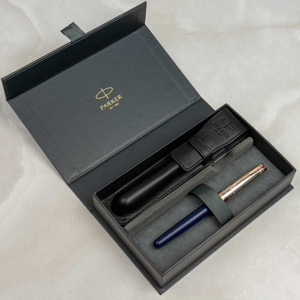 Изысканный набор Parker с перьевой ручкой SONNET SE Mt. Fuji Edition PGT с золотым пером 18К в специальной комплектации, дополненной кожаным чехлом и подарочной коробкой.