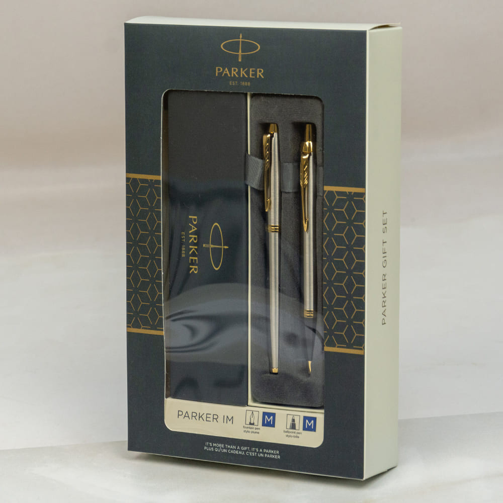 Набор ручек Parker IM Stainless Steel CT FP+BP (перьевая + шариковая) + черный чехол в подарочной упаковке GIFT24 Гарантия: 2 года