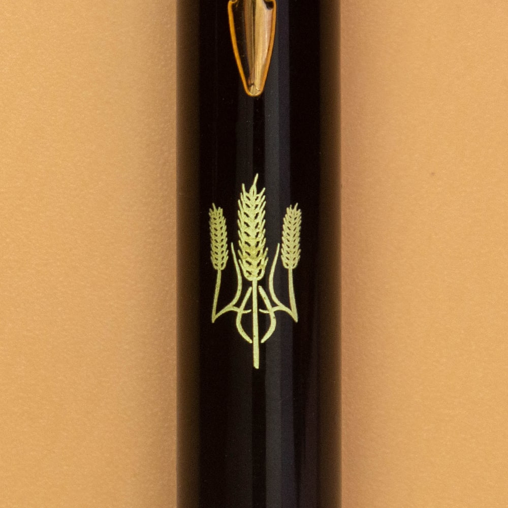 Оригінальна кулькова ручка Parker IM Black GT BP з гравіюванням Тризуба у вигляді трьох колосків пшениці. Для всіх, хто пишається бути українцем.