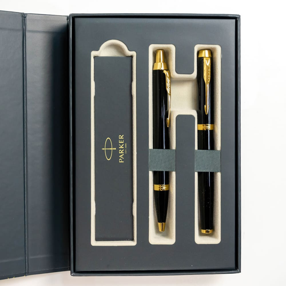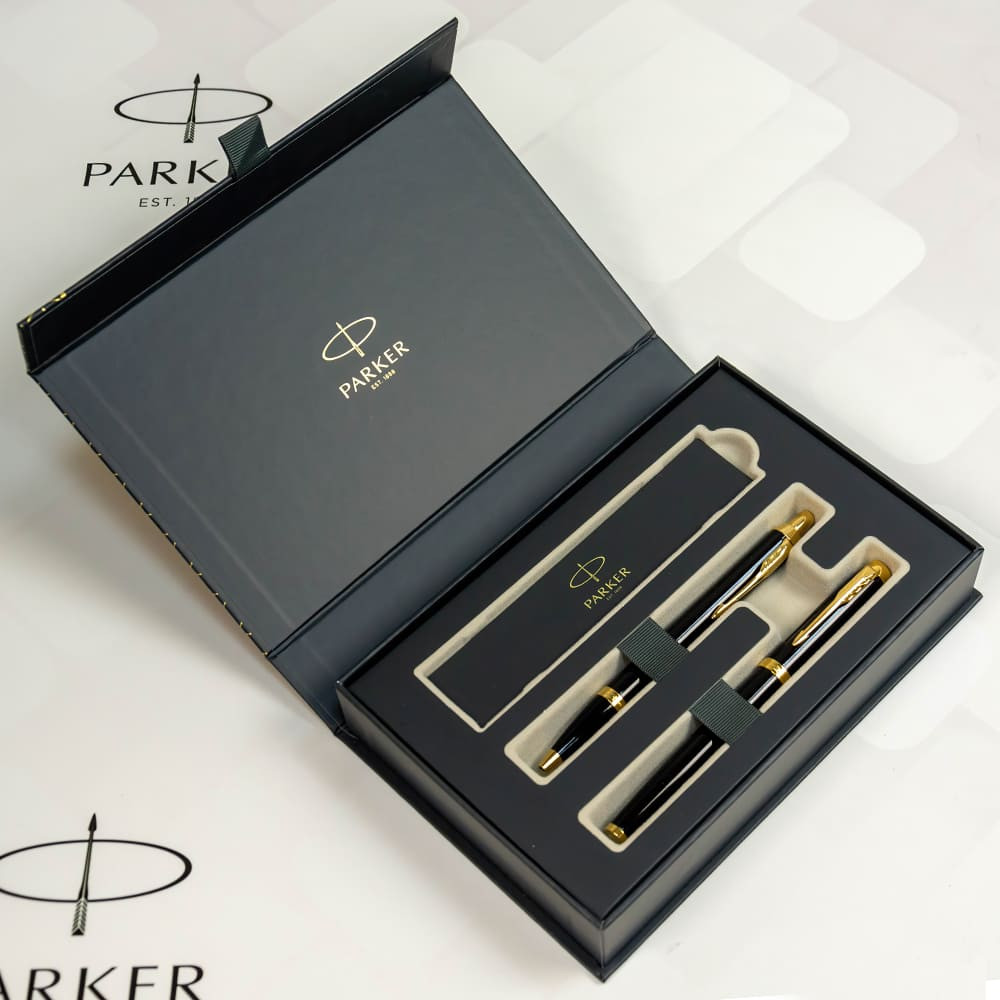 Parker IM Black GT FP+BP DUO24 – перова та кулькова ручка в чорному глянцевому оздобленні з позолотою у подарунковій упаковці. Перова ручка – це один із символів елегантності та поваги до мистецтва письма, тоді як кулькова ручка стане більш повсякденним варіантом.