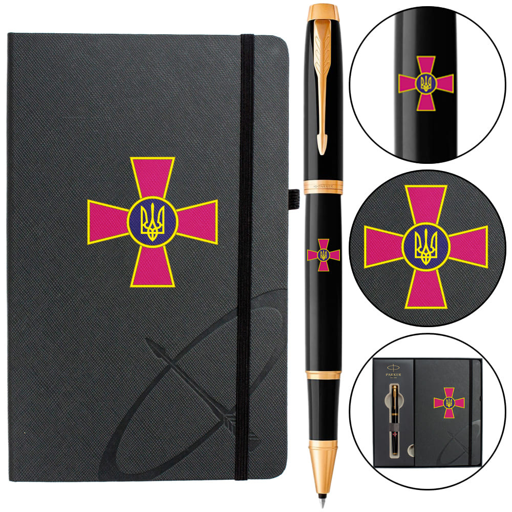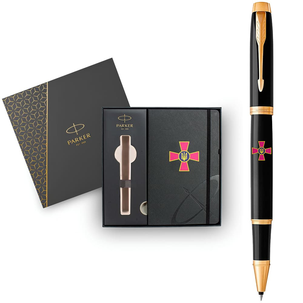Ручка-ролер IM ARMY Black GT RB Емблема ЗСУ + блокнот Parker + подарункова коробка GIFT24 Гарантія: 2 роки