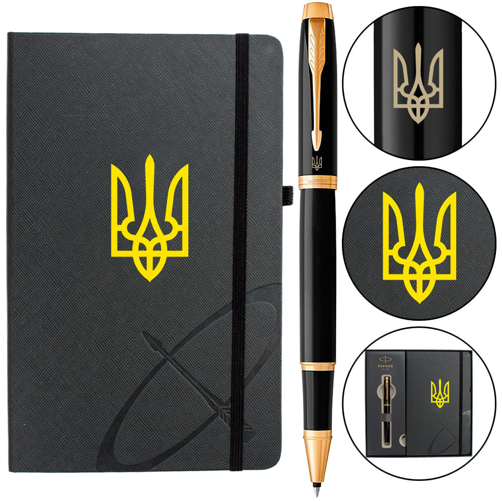 Набір: Ручка-ролер IM UKRAINE Black GT RB Тризуб + блокнот Parker + подарункова упаковка GIFT24 Гарантія: 2 роки