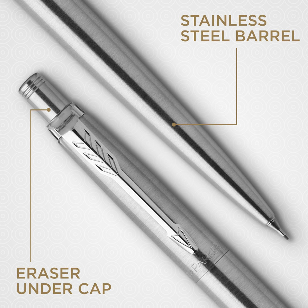 Олівець механічний JOTTER Stainless Steel CT PCL з грифельним стрижнем товщиною 0,5 мм та гумкою під ковпачком.
