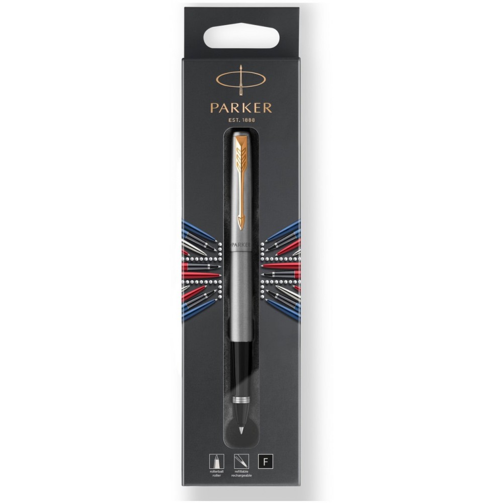 Оригінальна ролерна ручка Parker JOTTER Stainless Steel GT RB у спеціальній подарунковій коробці LONDON. Сучасний, точний і стильний інструмент для письма у сталевому полірованому дизайні з позолоченим кліпом-стрілою. Колекція Jotter (Джотер) – вибір молодих та енергійних людей, які хочуть отримати високу якість за розумною ціною. Належність до культового бренда підкреслює вигравірована назва компанії на ковпачку.