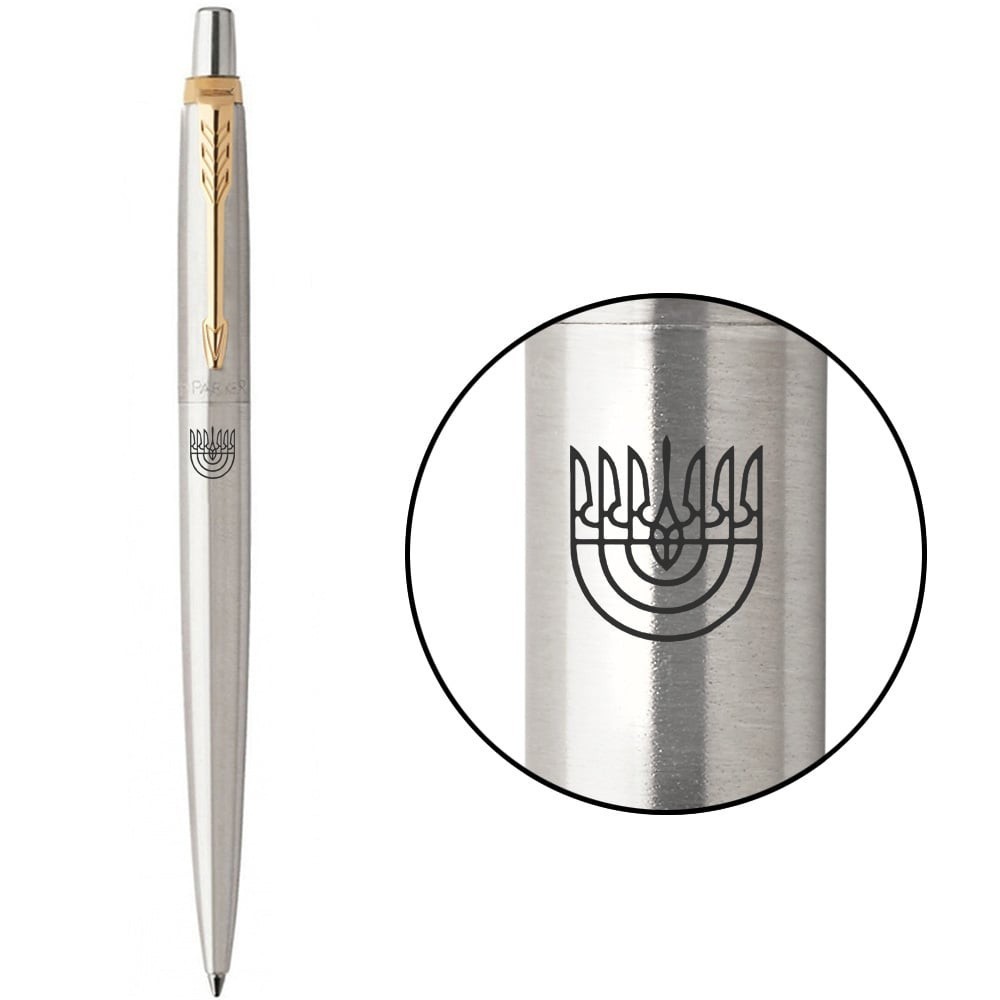 Кулькова ручка Parker JOTTER Stainless Steel GT BP з гравіюванням Тризуба, стилізованого під менору (семисвічник). Висококласний дизайн для всіх, хто пишається бути українцем та щиро вірить у майбутнє Української держави.