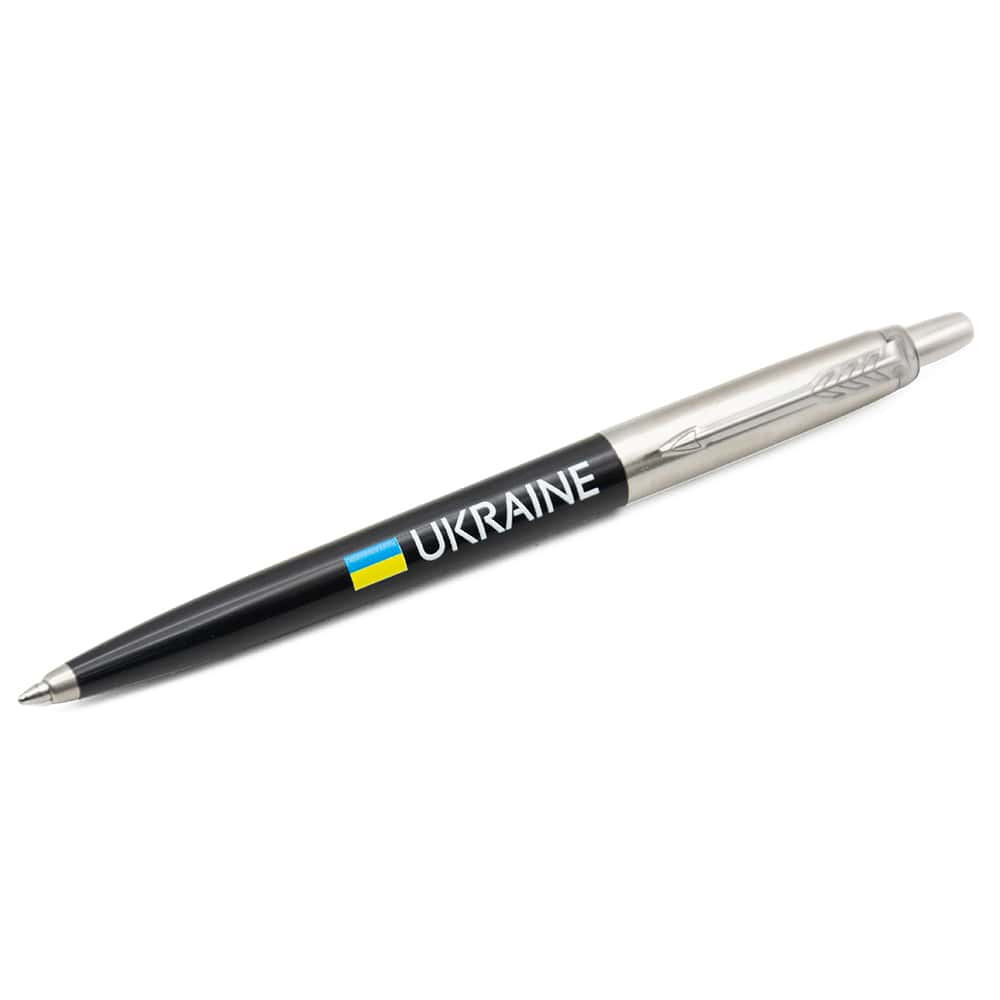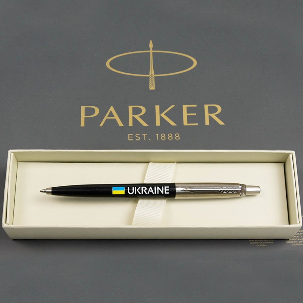 Чорна кулькова ручка Parker JOTTER UKRAINE Originals Black CT з кольоровим друком Прапора України та написом Ukraine. Завдяки персоналізованому дизайну з українською символікою продемонструє вашу гордість бути українцем та стане нетривіальним подарунком. Jotter з 1954 залишається найкращою ручкою для тих, кому потрібна проста і функціональна ручка для роботи, навчання.