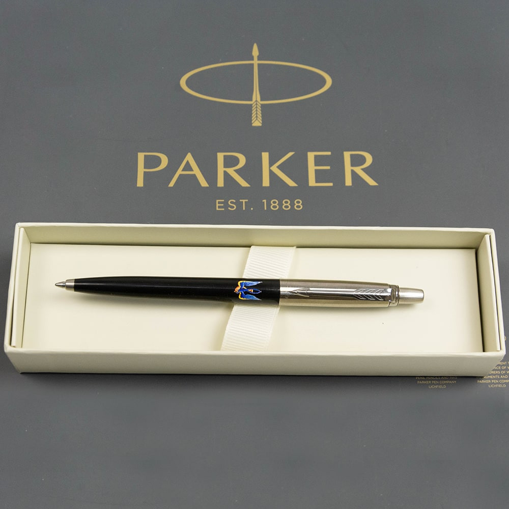 Чорна кулькова ручка Parker JOTTER UKRAINE Originals Black CT кольоровим друком Тризуб-Ластівка. Завдяки персоналізованому дизайну з українською символікою продемонструє вашу гордість бути українцем та стане нетривіальним подарунком. Jotter з 1954 залишається найкращою ручкою для тих, кому потрібна проста і функціональна ручка для роботи, навчання.