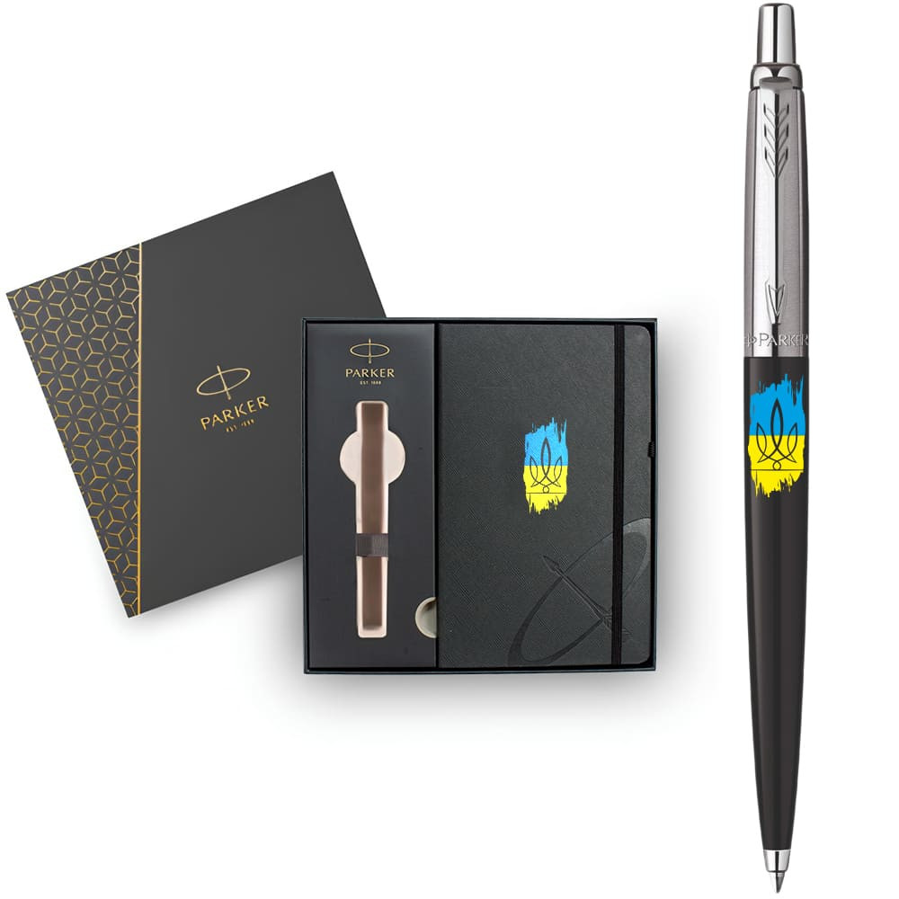 Ручка кулькова Parker JOTTER UKRAINE Black CT BP Тризуб фігурний на тлі прапора + блокнот + подарункова коробка GIFT24 (Франція) Гарантія: 2 роки