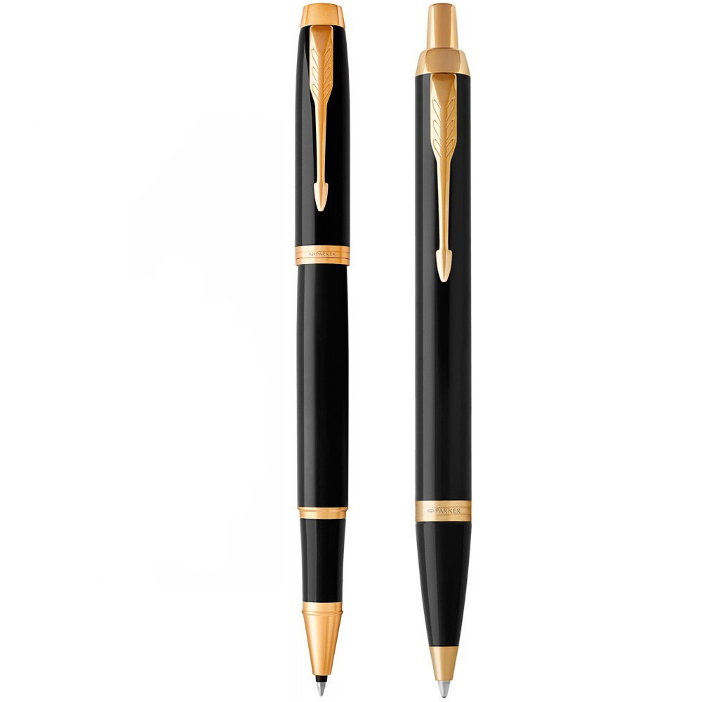 Набір ручок Parker IM Black GT RB+BP DUOSETS: ролерна та кулькова ручка у подвійній подарунковій коробці. Елегантний дизайн IM Black GT з латунним корпусом із насиченим лаковим покриттям чорного кольору. Розкішно виглядає оздоблення позолотою. Ручка-ролер дозволить вам насолоджуватися ідеально збалансованим і плавним письмом, яке пропонує комфорт використання кулькової ручки та вишуканий чорнильний слід, що нагадує перову ручку. У кульковій ручці використано оригінальний стрижень, а запасу чорнила вистачить на лінію приблизно 3,5 км.