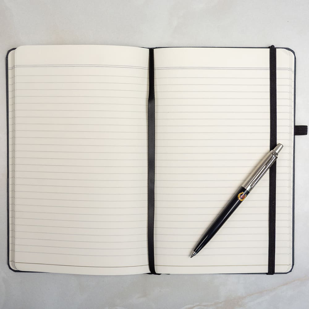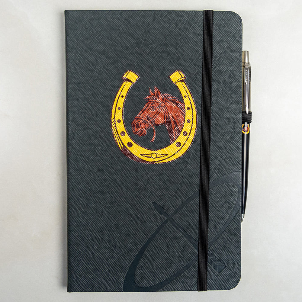 Тверда сіра палітурка з логотипом Parker і кольоровим друком Кінь з підковою.