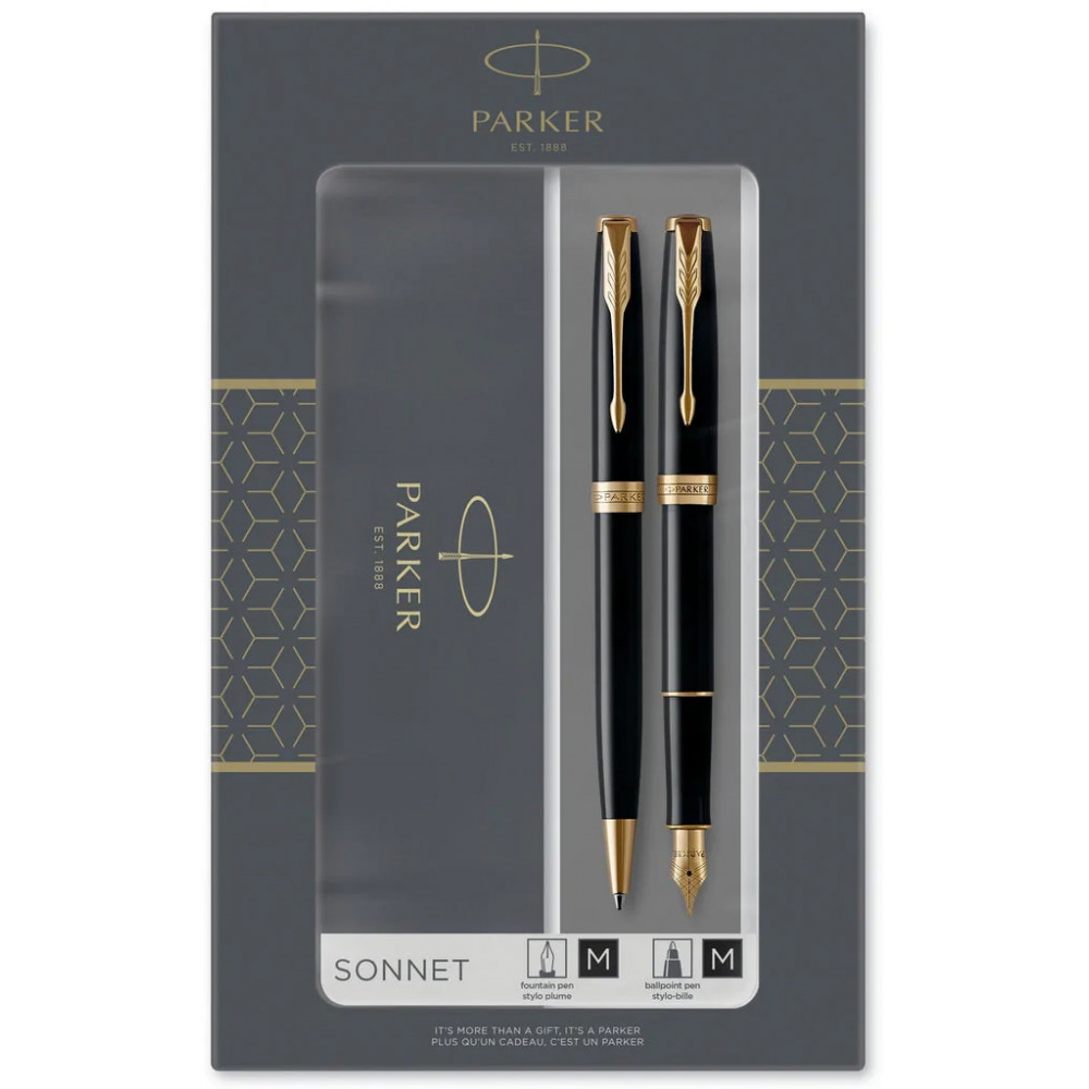 Parker SONNET Black Lacquer GT FP + BP [2093371] - преміальний подарунковий набір з двох ручок Sonnet (кулькова і перова) чорного кольору з золотим оздобленням.