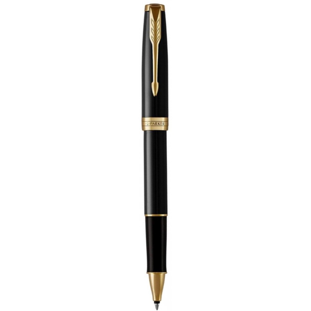 Бездоганна якість і вишуканий стиль цієї ручки-ролера PARKER Sonnet сподобається всім, хто цінує вишукані оригінальні письмові інструменти. Ручка має корпус і ковпачок, покриті глянцевим чорним лаком, і чорну зону тримання з ударостійкого пластика. Кліп-стріла і кільця з вигравіруваною назвою бренду доповнені блискучим оздобленням із золота. Ця ручка - квінтесенція стилю та у поєднанні з видатною якістю піднімає письма на більш високий рівень і приносить море задоволення.