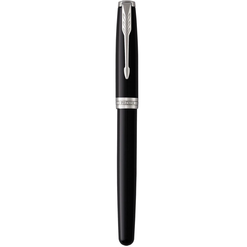 Parker SONNET Black Lacquer CT FP F - витончена перова ручка з елегантної колекції Sonnet. Чорний глянцевий корпус з паладієвим оздобленням і тонке сталеве перо.