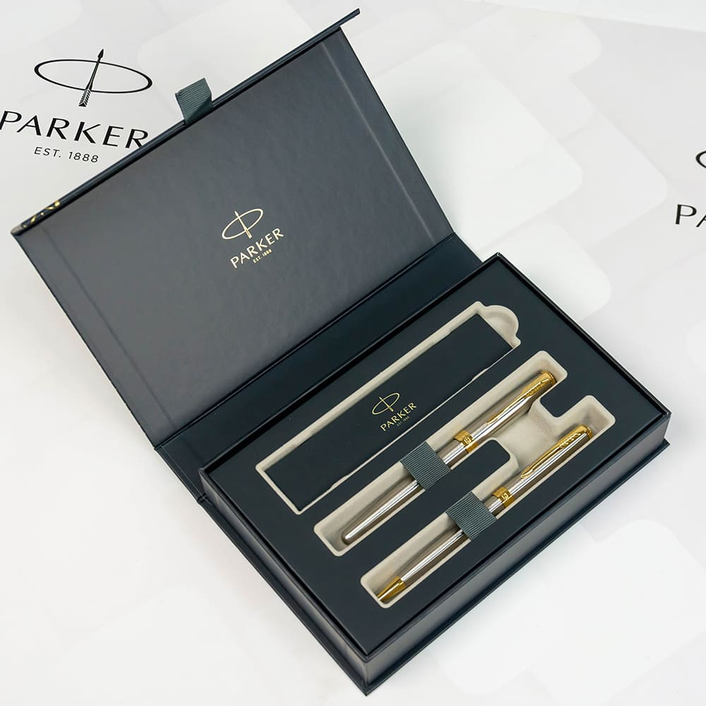 Класика в сталевому полірованому дизайні зі зручною зоною тримання. Благородне поєднання з позолоченими деталями надає ручкам стиль поза часом. Гравірування назви бренду Parker на кожній із ручок і впізнаваний кліп-стріла голосно заявляють про шляхетне походження інструмента. Елегантний подарунок для шанувальників незмінної якості ручок Parker.
