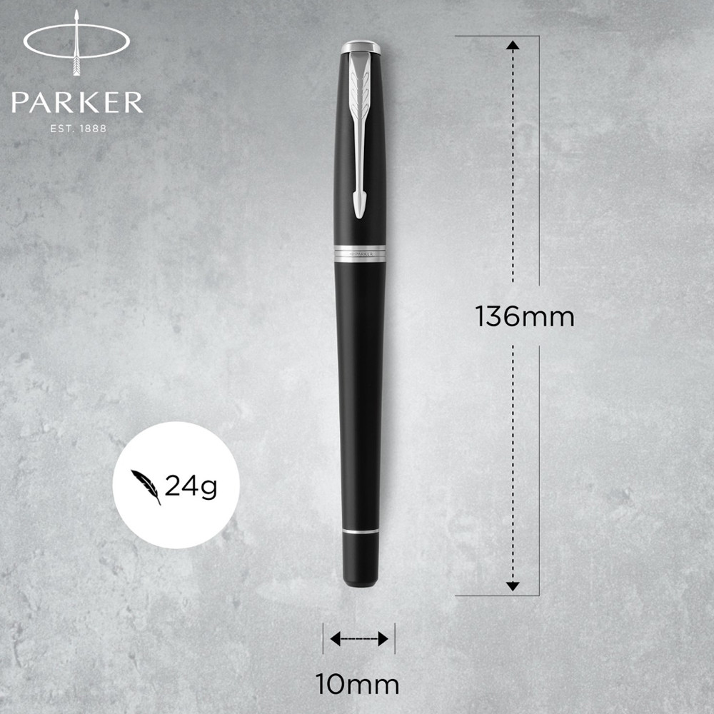 Оригінальна ручка-перо Parker URBAN з оздобленням Muted Black CT. Ергономічний дизайн з металевим корпусом і чорною глянцевою зоною тримання із пластика дозволить вам насолоджуватися ідеально збалансованим письмом. Незабутній подарунок для випускників, а також гарний вибір для підписання важливих документів. Сучасне перо з гравіюванням забезпечує надійний та індивідуальний досвід письма.